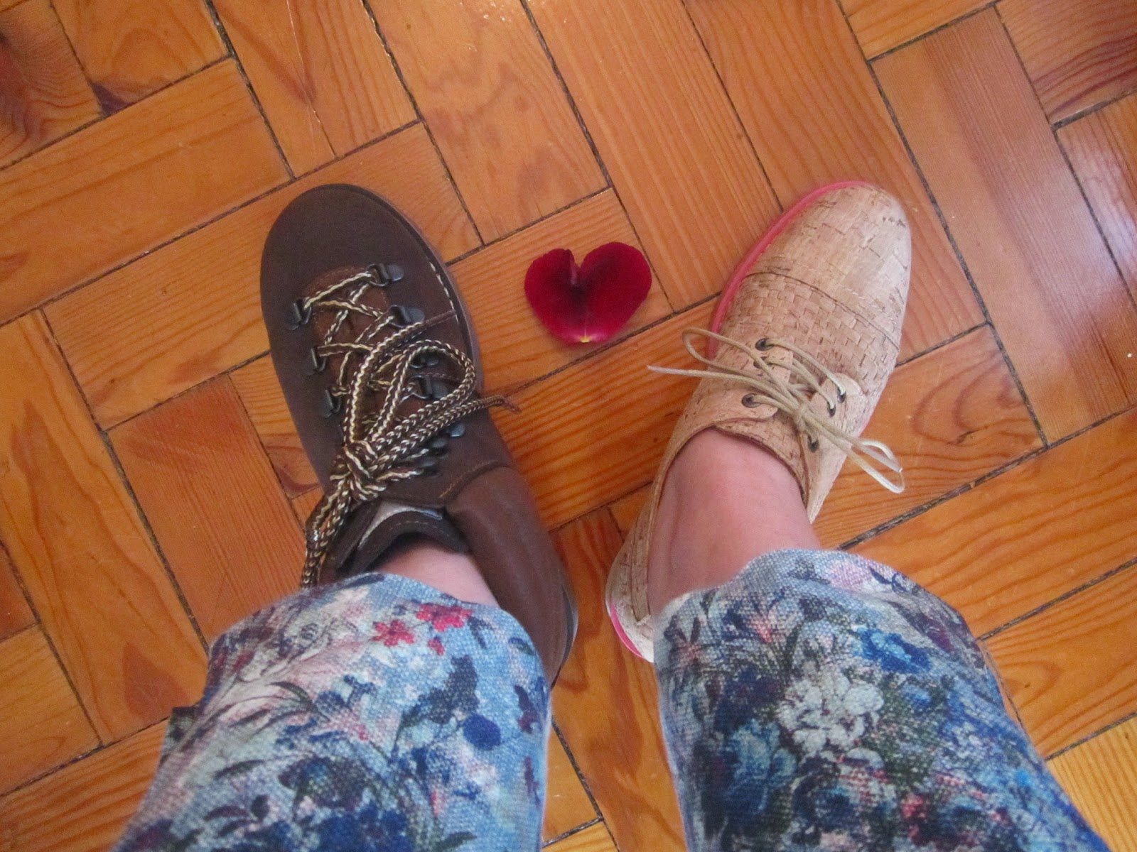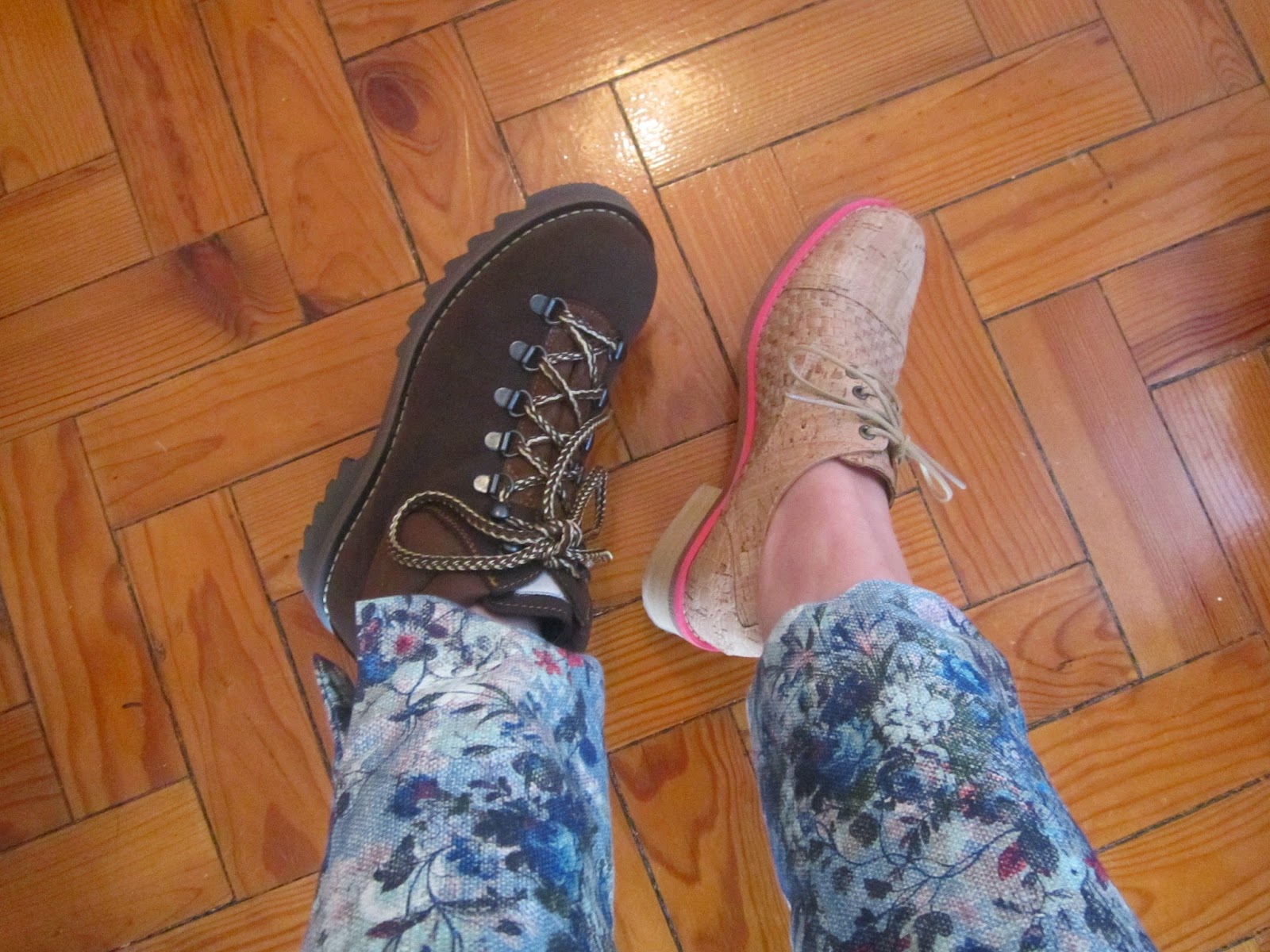 Acima, as minhas novas paixões, compradas há muito poucos dias! As botas para a caminhadas campestres, os sapatos... bem, para a própria da lua, de tão lindos. Cortiça I love you.